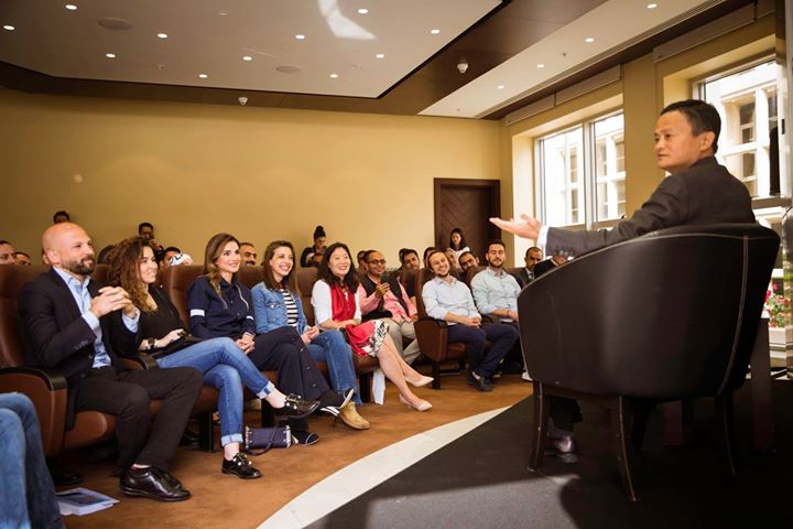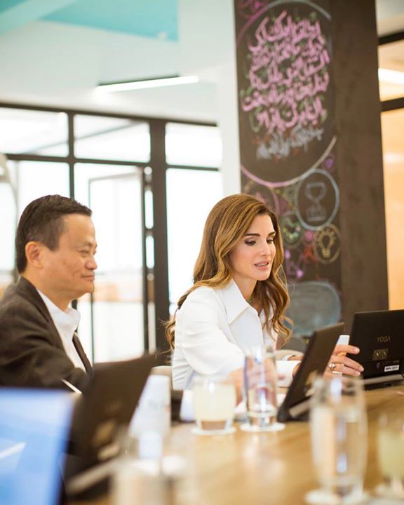 Queen Rania during a visit to Edraak offices with Mr. Jack Ma Lead-founder and Executive Chairman of Alibaba Group