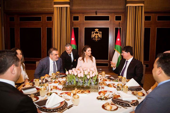 Queen Rania joins a group of young Jordanians for iftar at Basman Palace