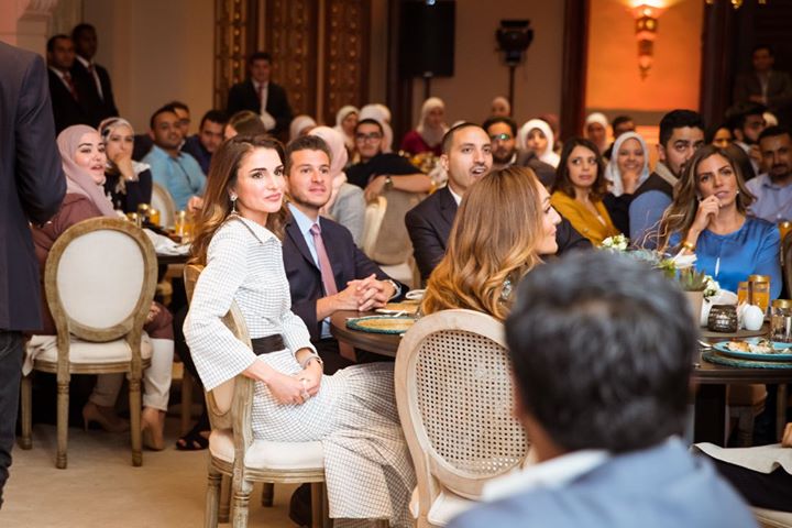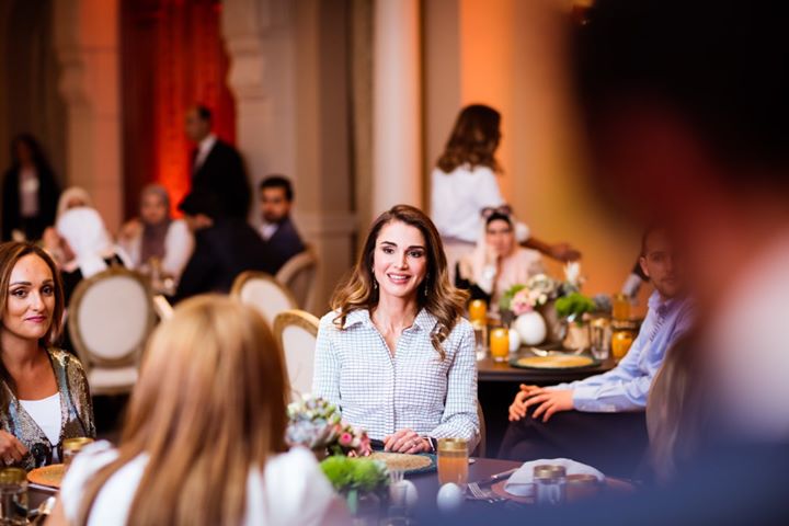 الملكة رانيا خلال إفطار مع مجموعة من الشباب والشابات في قصر بسمان