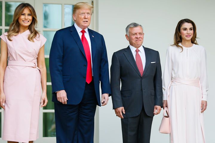 جلالة الملك عبدالله الثاني وجلالة الملكة رانيا مع الرئيس الأمريكي دونالد ترامب والسيدة الأولى ميلانيا ترامب في البيت الأبيض في العاصمة واشنطن