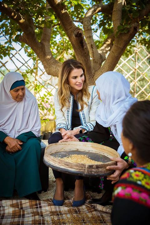 الملكة رانيا خلال زيارة الى قرية البيوضة