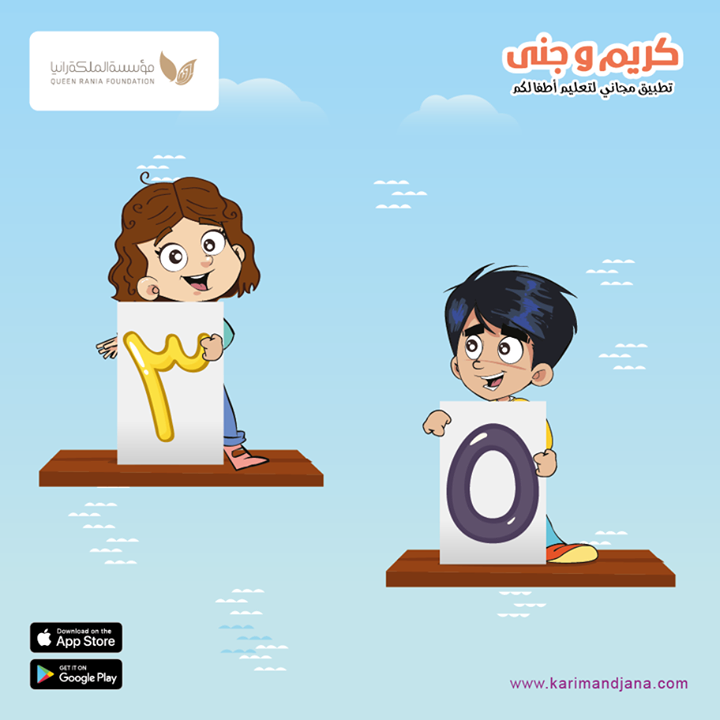 "ساعد طفلك على تعلم الأرقام بطريقة سهلة وممتعة، حمّل تطبيق "كريم وجنى” مجاناً الآن www.karimandjana.com"