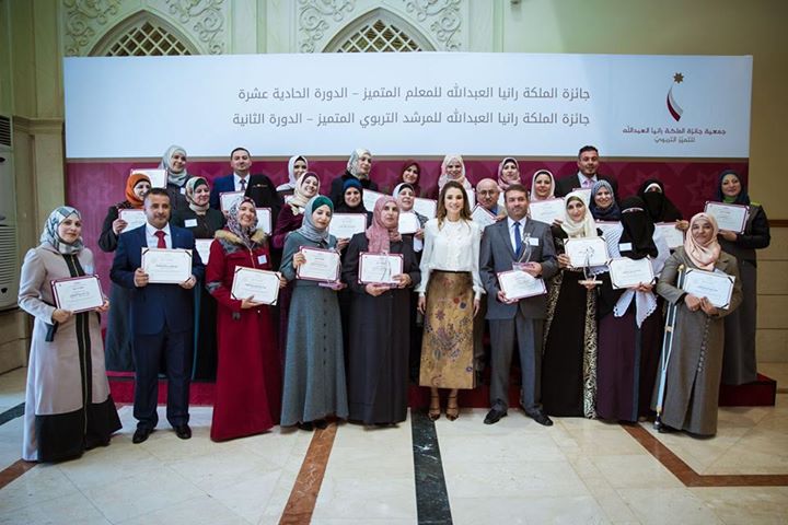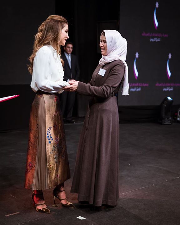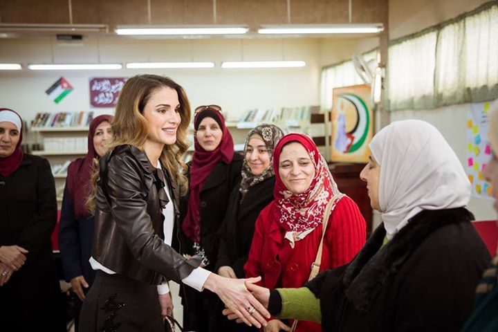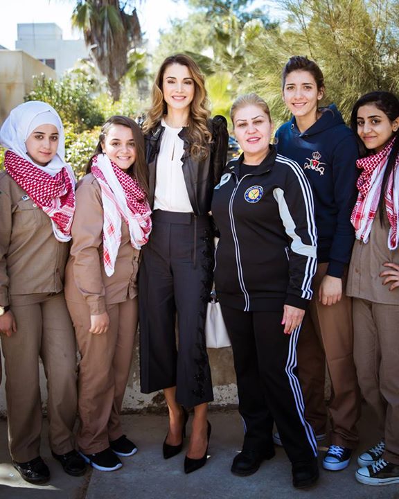 الملكة رانيا خلال زيارة إلى مدرسة البيادر المهنية الثانوية للبنات لتكريم المدارس التي تم اعتمادها ضمن برنامج الاعتماد الوطني للمدارس الصحية الذي تنفذه الجمعية الملكية للتوعية الصحية