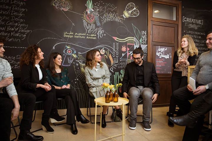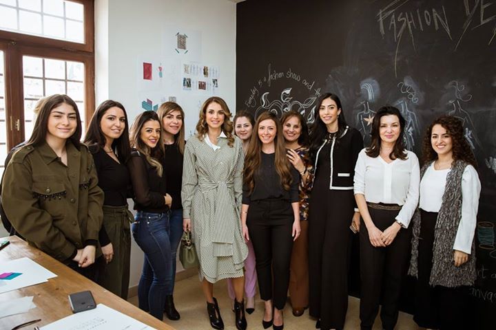 الملكة رانيا خلال زيارة إلى معهد تصميم عمان