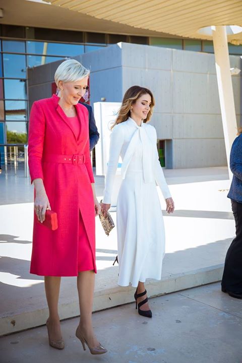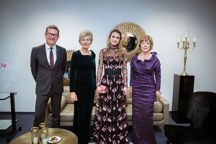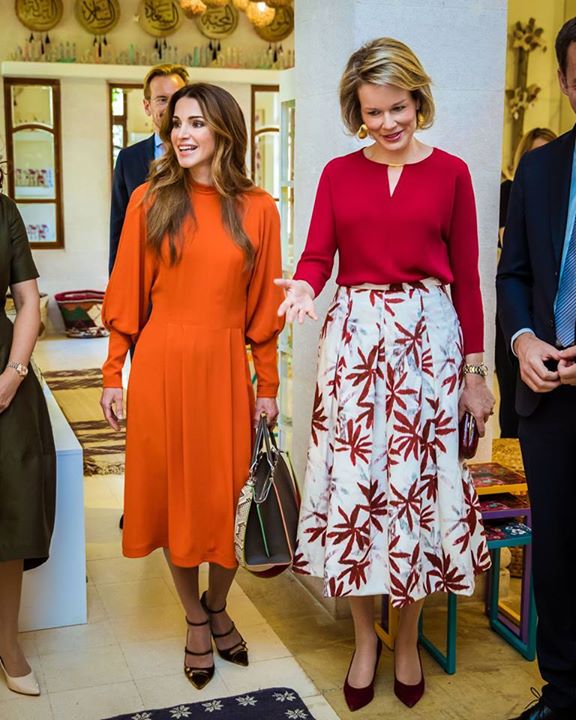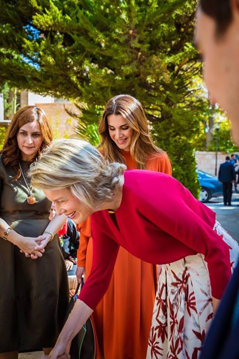 الملكة رانيا العبدالله والملكة ماتيلد - ملكة بلجيكا خلال زيارة إلى صالة عرض مؤسسة نهر الأردن