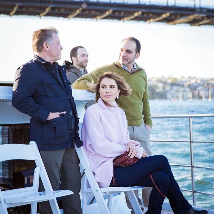 مع جلالة الملك وصاحبي السمو الملكي الأمير علي بن الحسين والأمير هاشم بن الحسين، خلال جولة بالقارب في سيدني