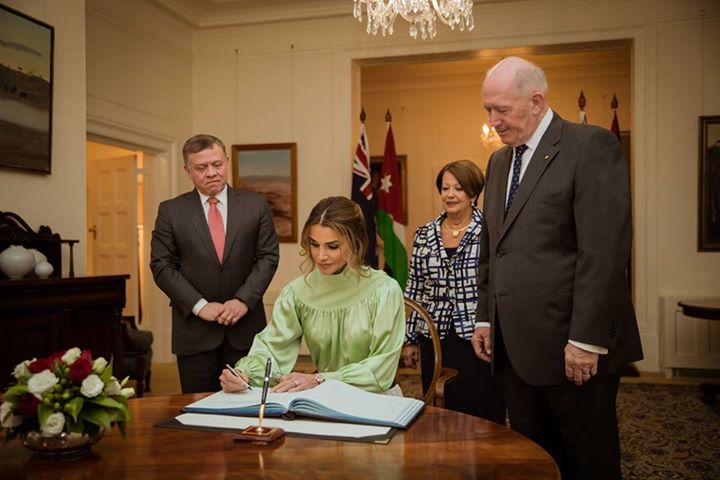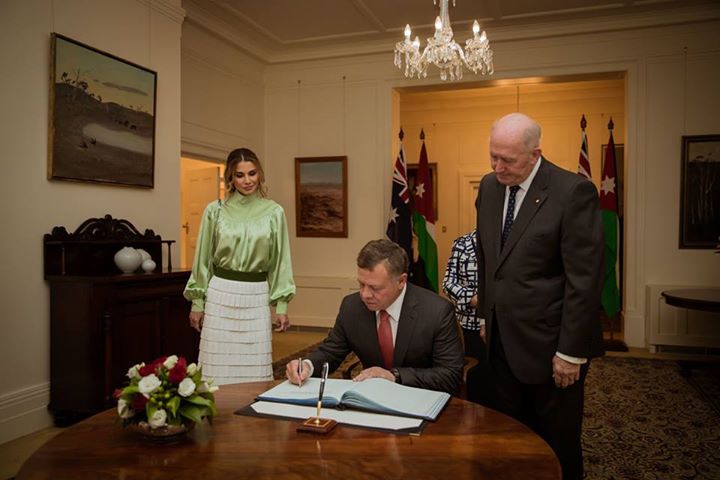 جلالة الملك عبدالله الثاني والملكة رانيا العبدالله في مقر اقامة الحاكم العام في كانبرا