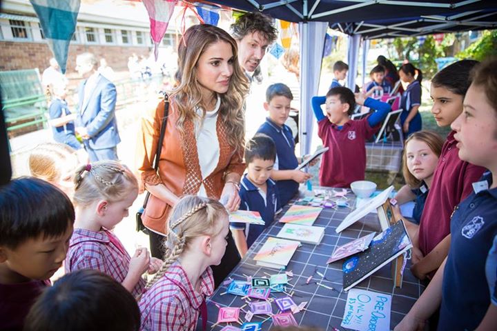 الملكة رانيا خلال زيارة إلى مدرسة "فورت ستريت" في سيدني