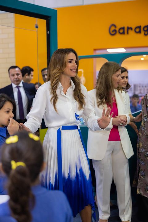 Queen Rania visits Al Jandaweel Secondary School for Girls to learn about digital skills program Road2Code and take part in an activity held under the global ed-tech initiative, Hour of Code.