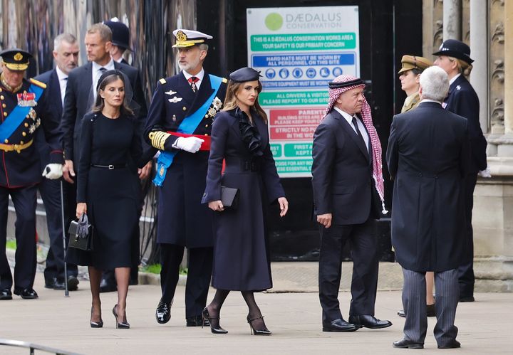 Their Majesties King Abdullah II and Queen Rania join world leaders in attending the state funeral of Queen Elizabeth II, held at Westminster Abbey in London, in the presence of King Charles III of the United Kingdom and members of the UK royal family