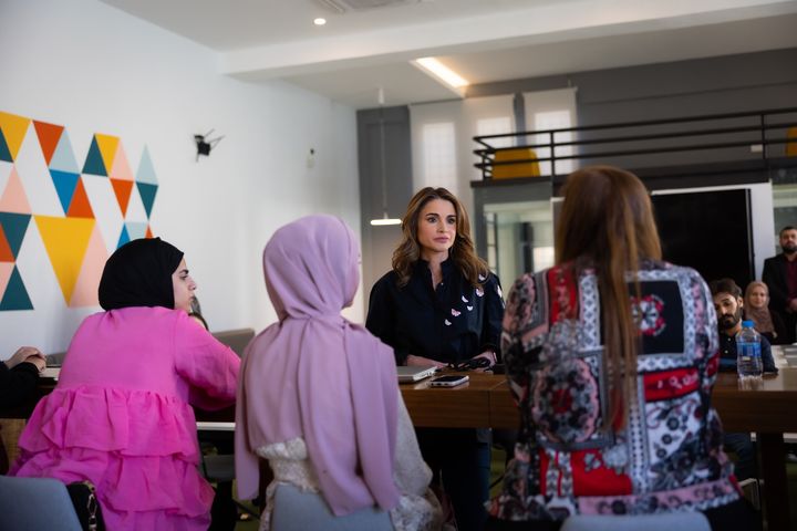 الملكة رانيا خلال زيارة الى مقر تطبيق ميكسي
