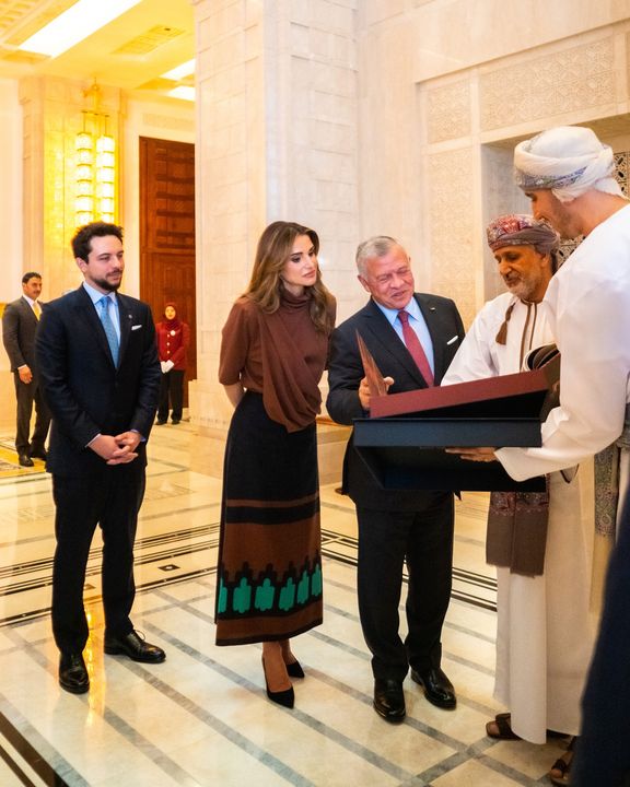 جلالة الملك عبدالله الثاني وجلالة الملكة رانيا وسمو الأمير الحسين ولي العهد خلال الزيارة الرسمية إلى سلطنة عُمان الشقيقة