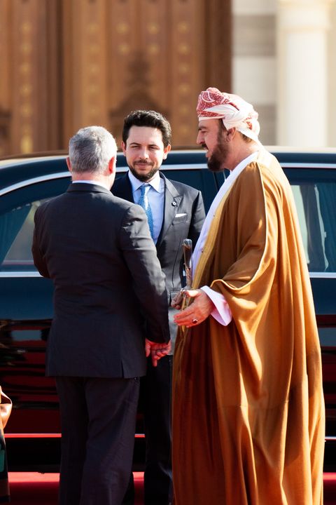 Their Majesties King Abdullah II and Queen Rania, and His Royal Highness Crown Prince Al Hussein during an official visit to Oman