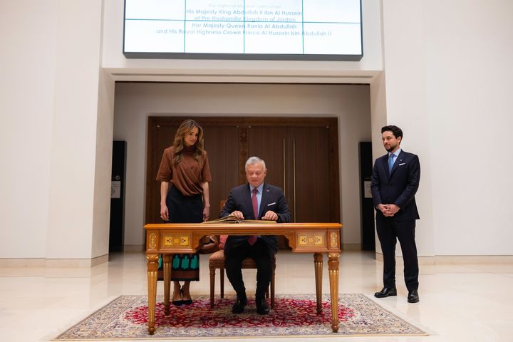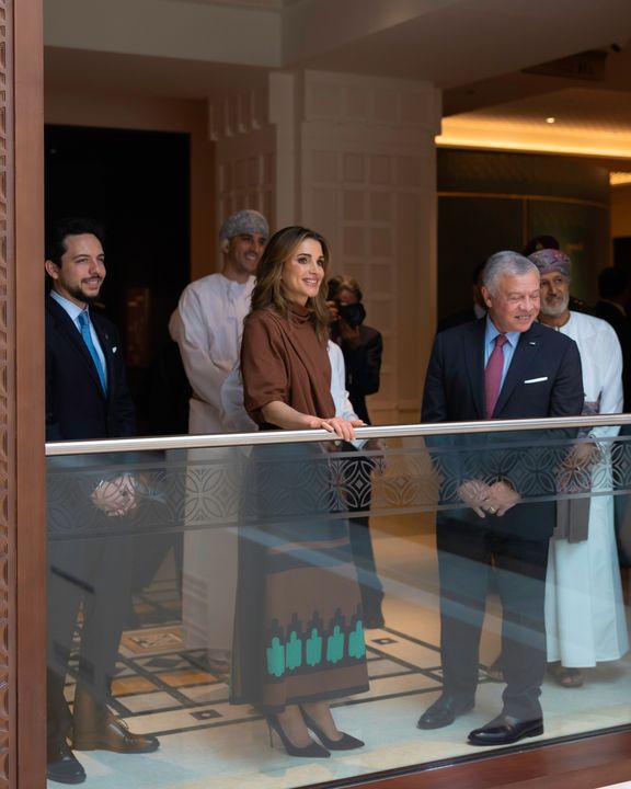 جلالة الملك عبدالله الثاني وجلالة الملكة رانيا وسمو الأمير الحسين ولي العهد خلال زيارة الى المتحف الوطني العُماني ودار الأوبرا السلطانية بالعاصمة مسقط