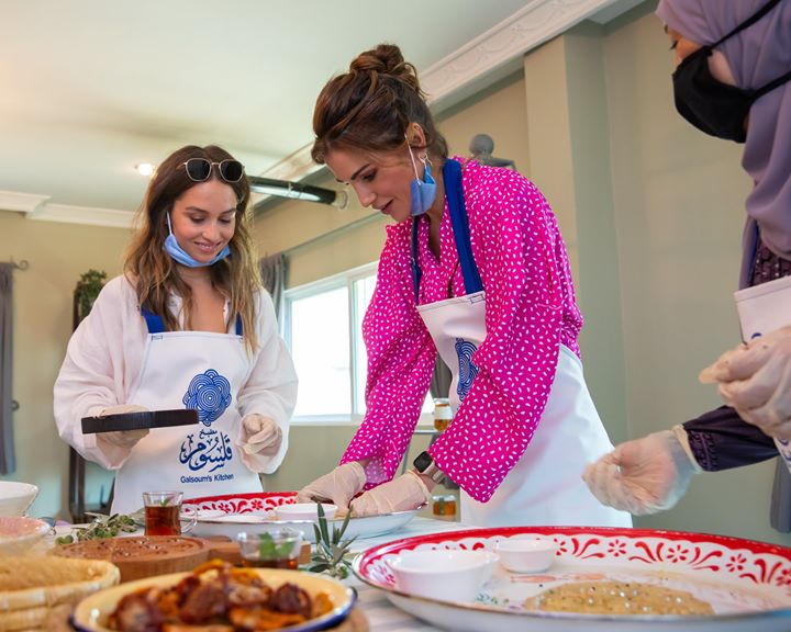الملكة رانيا والأميرة إيمان خلال زيارة إلى بيت البركة وبيت الورد في أم قيس