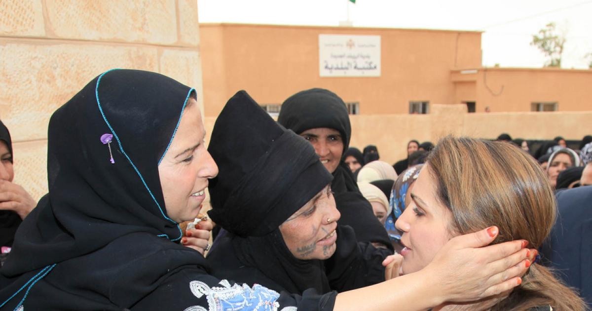 جلالة الملكة رانيا العبدالله مع سيدات لواء الرويشد وذلك خلال زيارة جلالتها إلى المنطقة