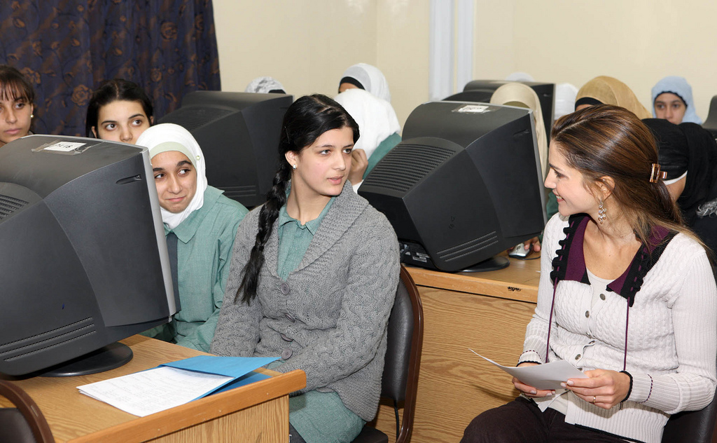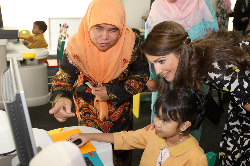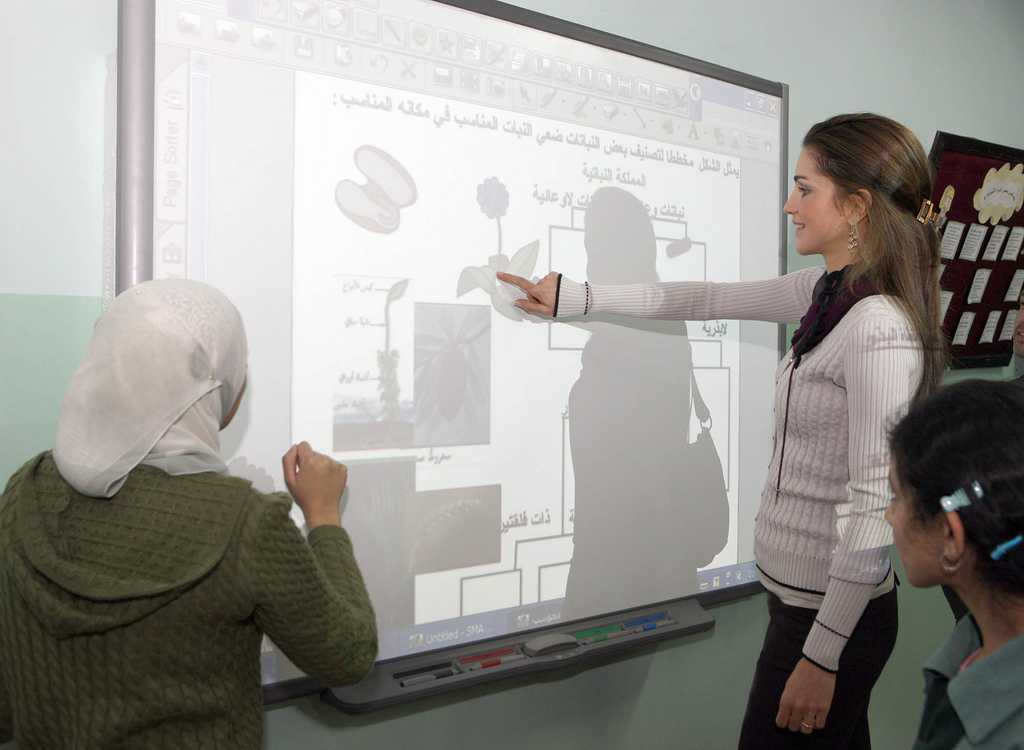 During her visit to Al Shaffa Bint Awf Secondary School for Girls in Jabal Nazif where she checked on progress achieved in equipping public schools with technology and tools to facilitate the learning process under the Jordan Education Initiative (JEI)