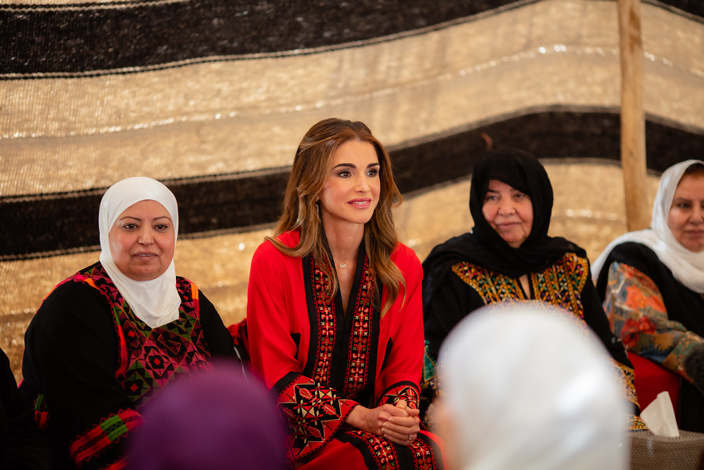 الملكة رانيا خلال زيارة إلى جمعية همة نساء البلقاء الخيرية