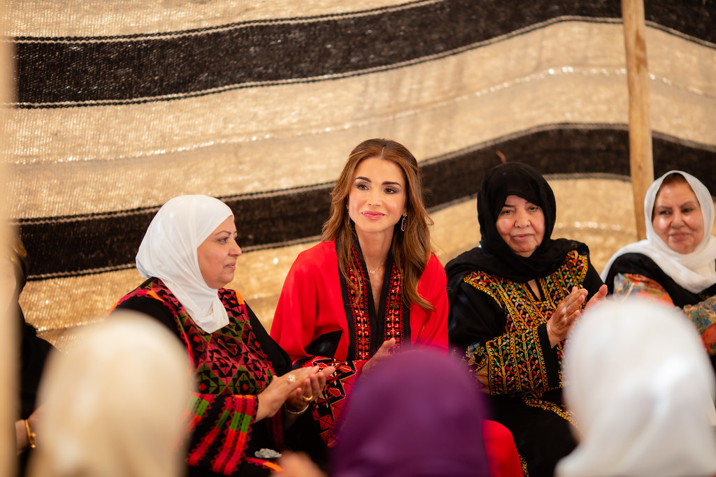 الملكة رانيا خلال لقاء مع سيدات من بلقاوية عمان