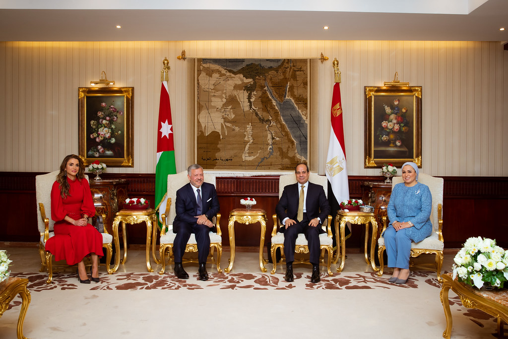 Their Majesties King Abdullah II and Queen Rania Al Abdullah with Egyptian President Abdel Fattah El Sisi, and his wife Mrs. Entissar El Sisi during a visit to Egypt