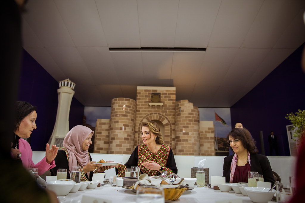 Queen Rania during a visit to Women of Al Balqa’s Himmeh Charity Association