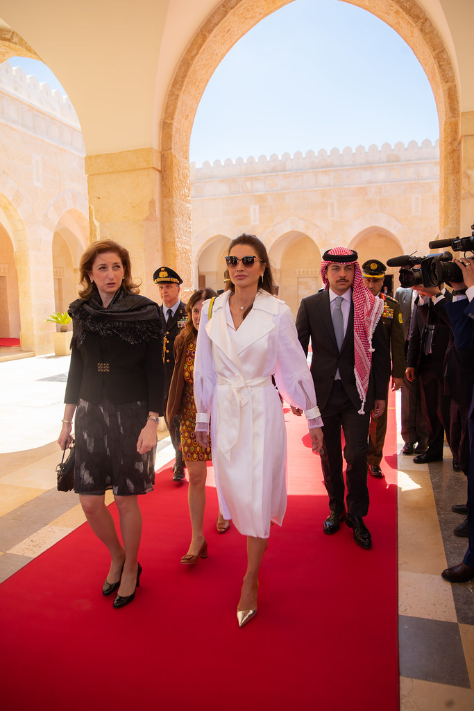 جلالة الملك عبدالله الثاني وجلالة الملكة رانيا العبدالله وولي العهد سمو الأمير الحسين بن عبدالله الثاني، خلال استقبال الرئيس الإيطالي سيرجيو ماتاريلا وابنته سيدة إيطاليا الأولى لورا ماتاريلا في قصر الحسينية
