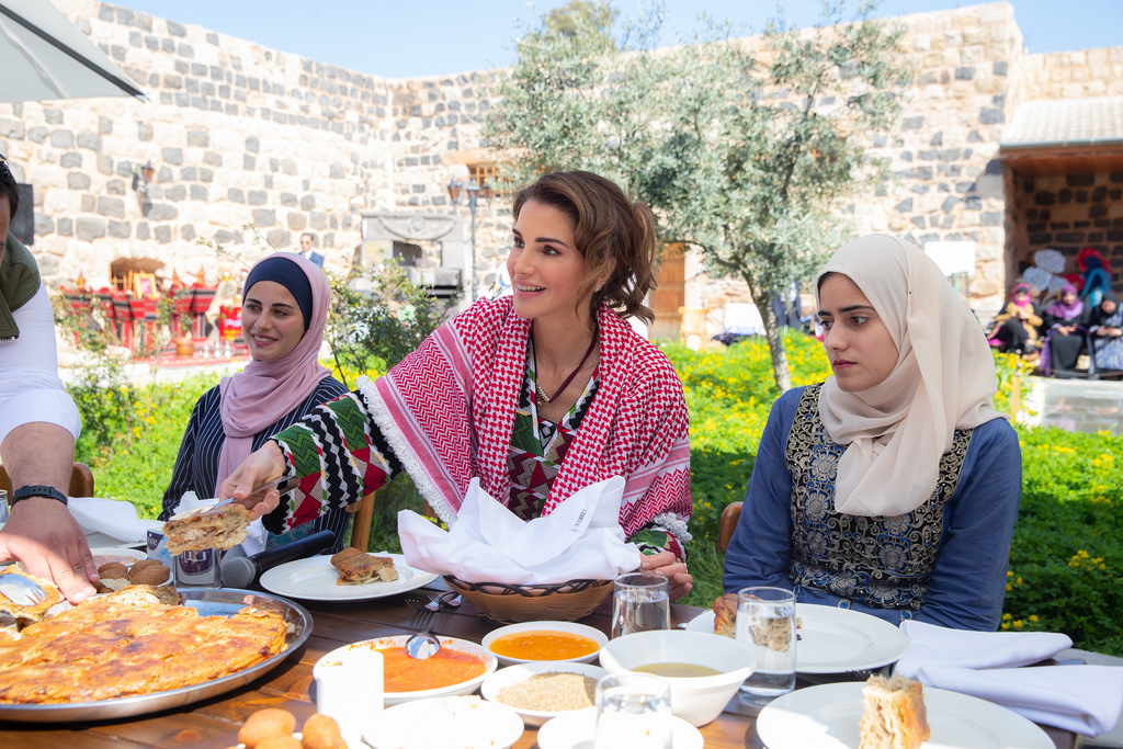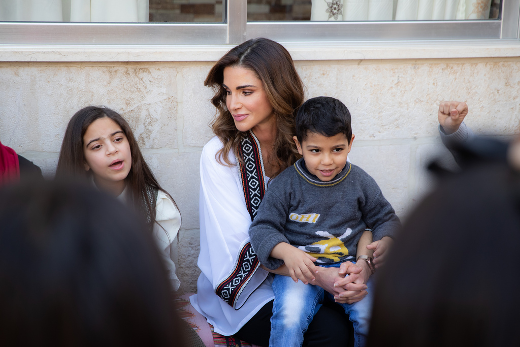 Queen Rania during a visit to Irbid where she met with volunteers and beneficiaries of the Muhafazati Volunteering Foundation
