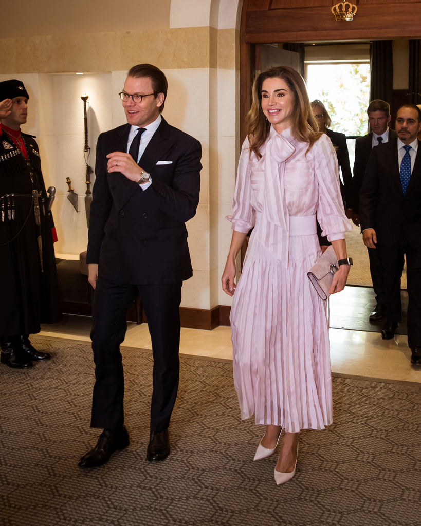Queen Rania before welcoming Sweden’s Crown Princess Victoria and Prince Daniel at Al Husseiniya Palace