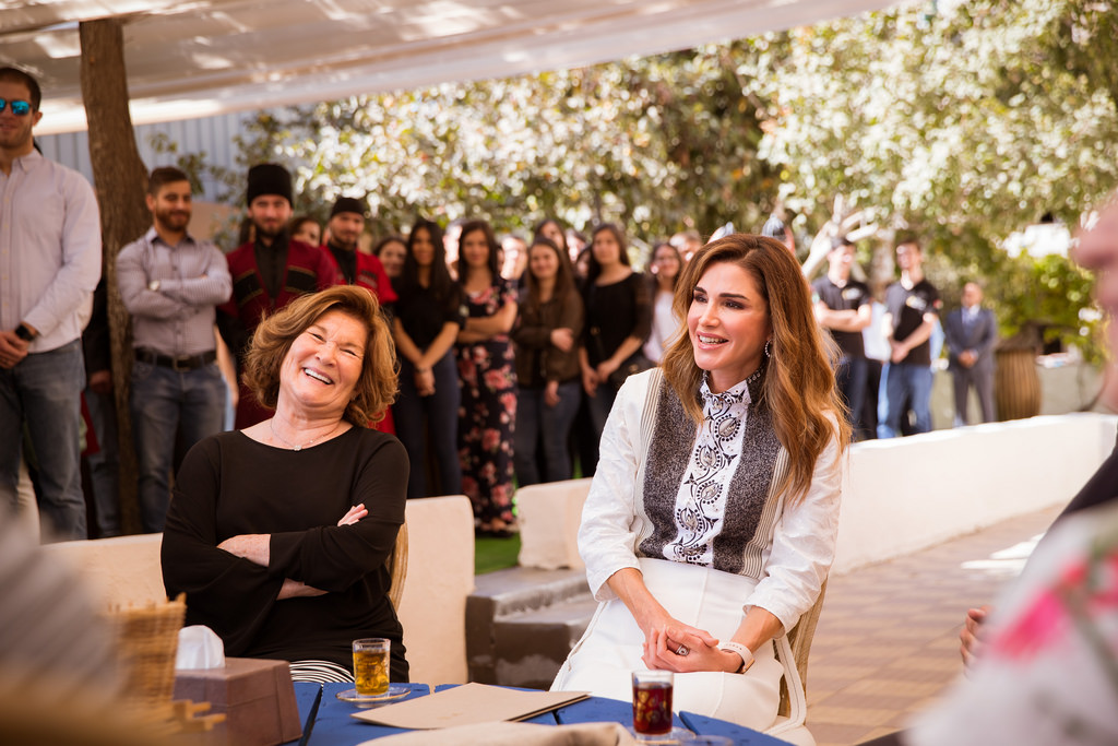 الملكة رانيا خلال لقاء مع شباب مستفيدين من المنح الدراسية لصندوق الأمان لمستقبل الأيتام لهذا العام
