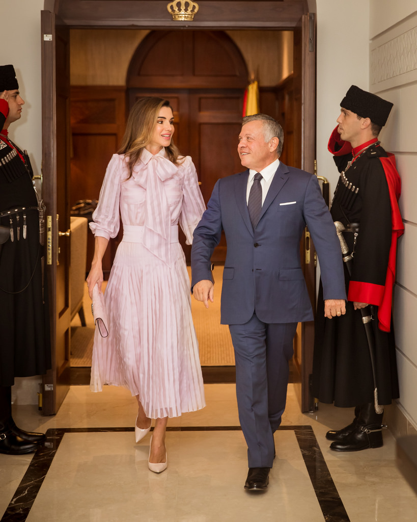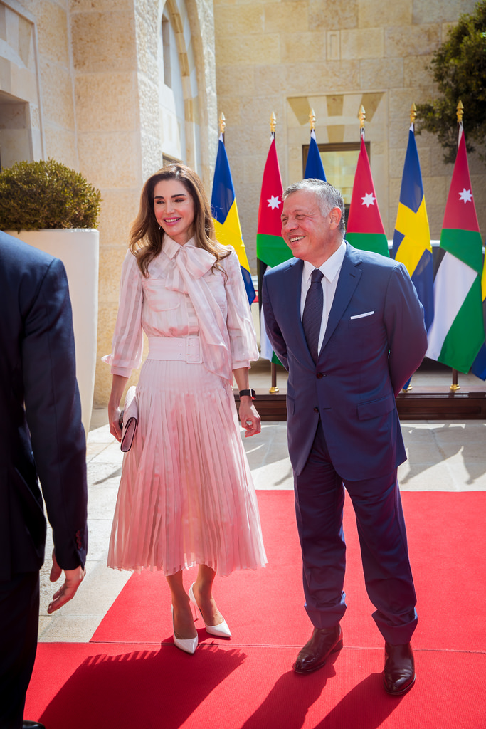 Their Majesties King Abdullah II and Queen Rania before welcoming Sweden’s Crown Princess Victoria and Prince Daniel at Al Husseiniya Palace