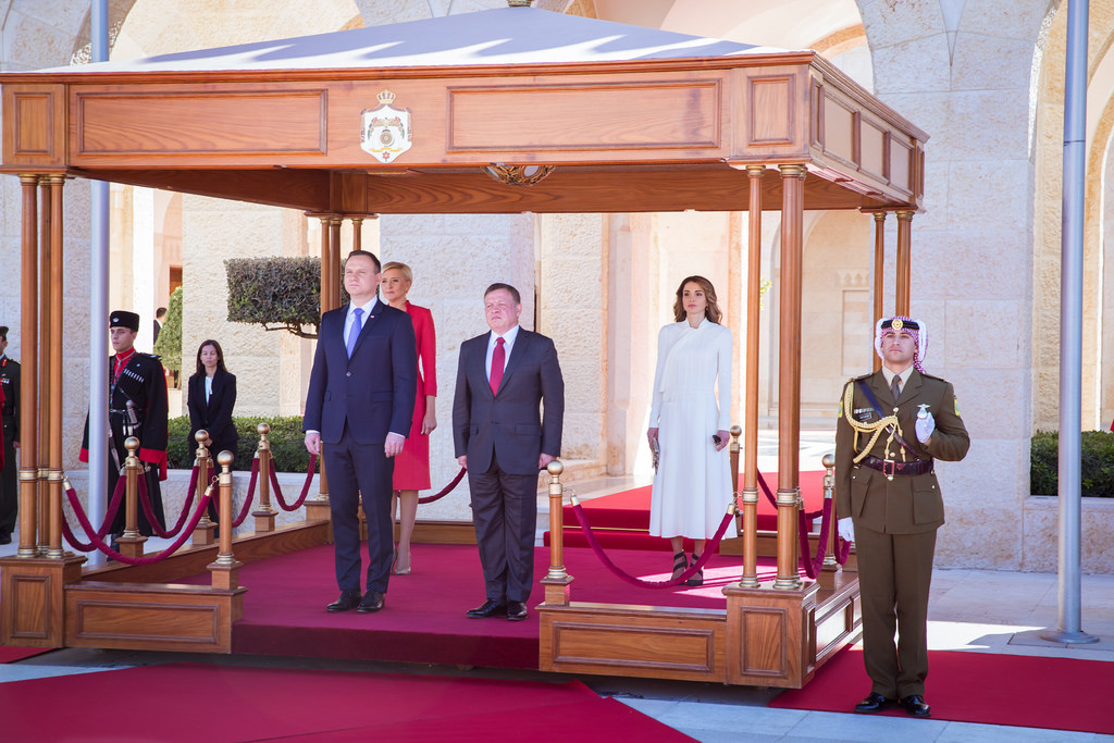King Abdullah and Queen Rania welcome President of Poland Andrzej Duda and his wife the First Lady of Poland Agata Kornhauser-Duda