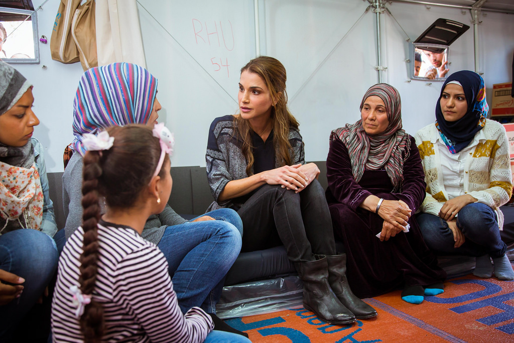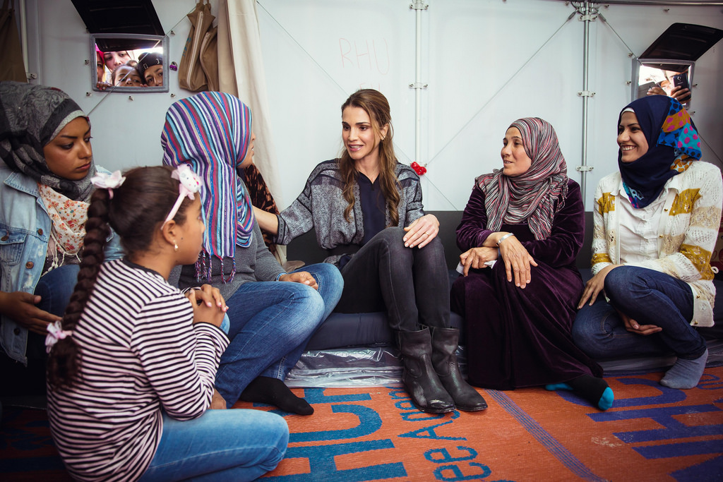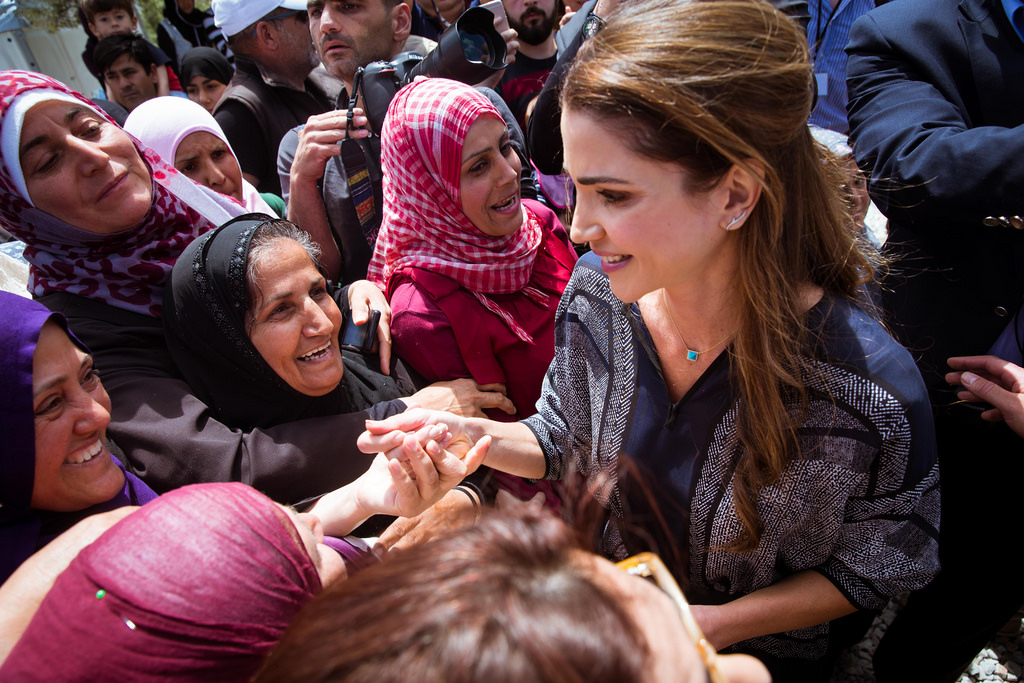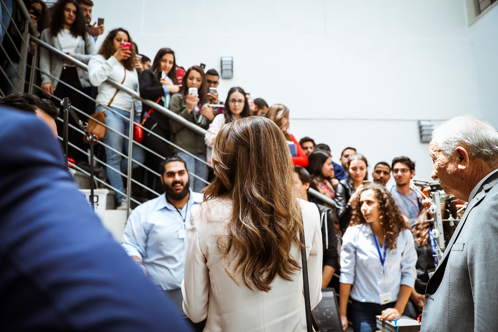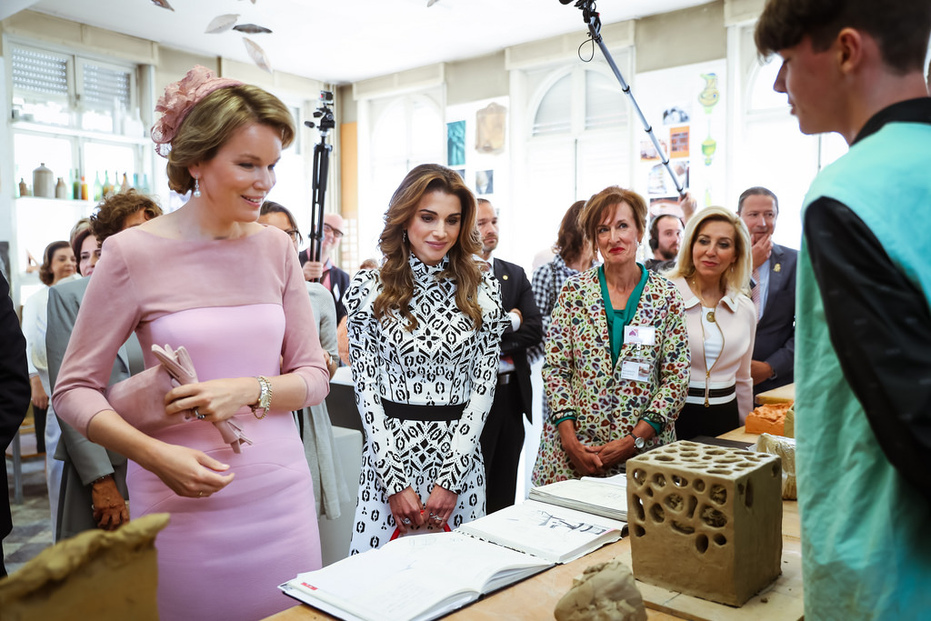 Her Majesty Queen Rania with Her Majesty Queen Mathilde at the Technical Institute of the Holy Family