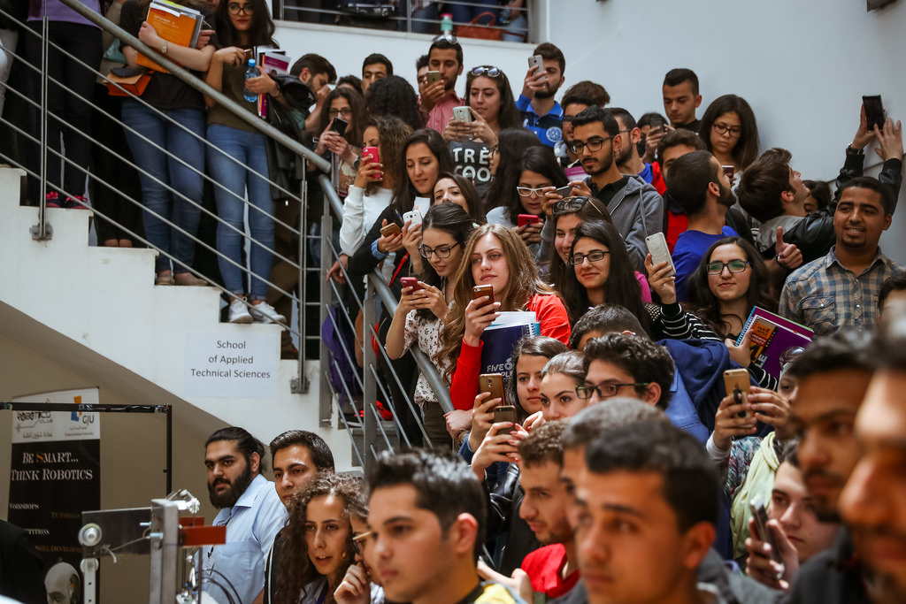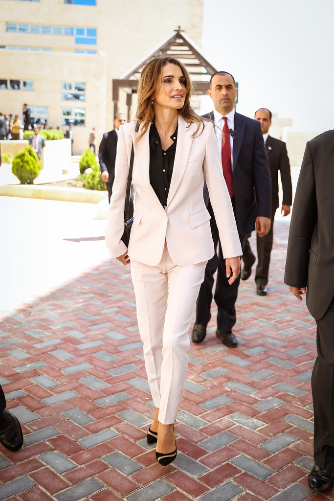 الملكة رانيا اثناء زيارتها إلى الجامعة الألمانية الأردنية.