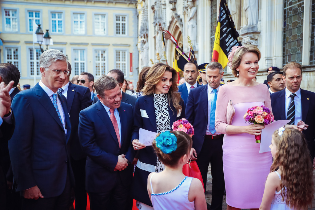Their Majesties King Abdullah and Queen Rania with Their Majesties King Philipe and Queen Mathilde during a tour in Brugge city
