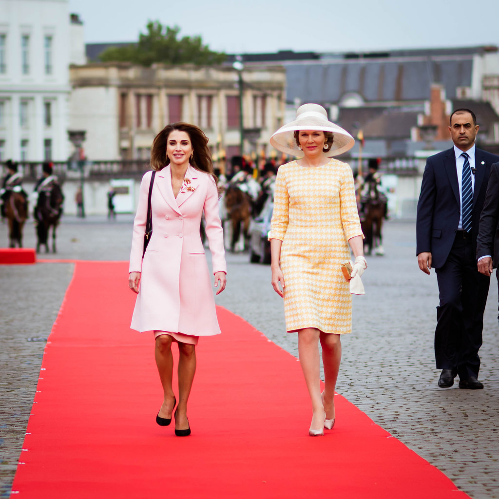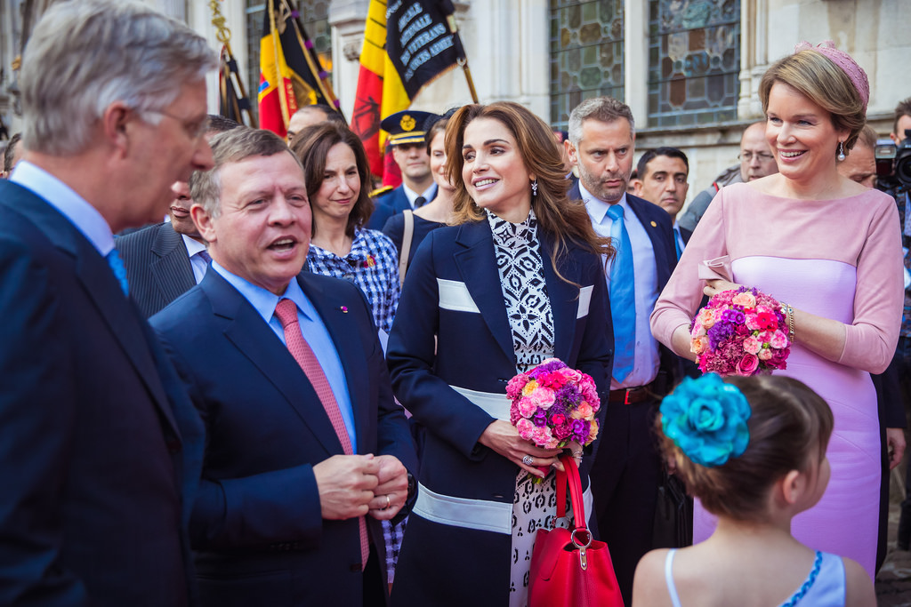 Their Majesties King Abdullah and Queen Rania with Their Majesties King Philipe and Queen Mathilde during their official state visit to Belgium.