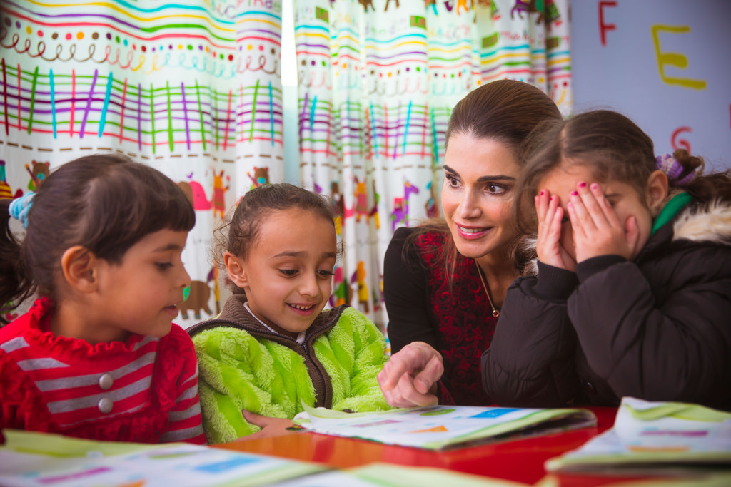 جلالة الملكة رانيا العبدالله خلال زيارتها إلى جمعية بصمة خير في بلدة علان في محافظة البلقاء