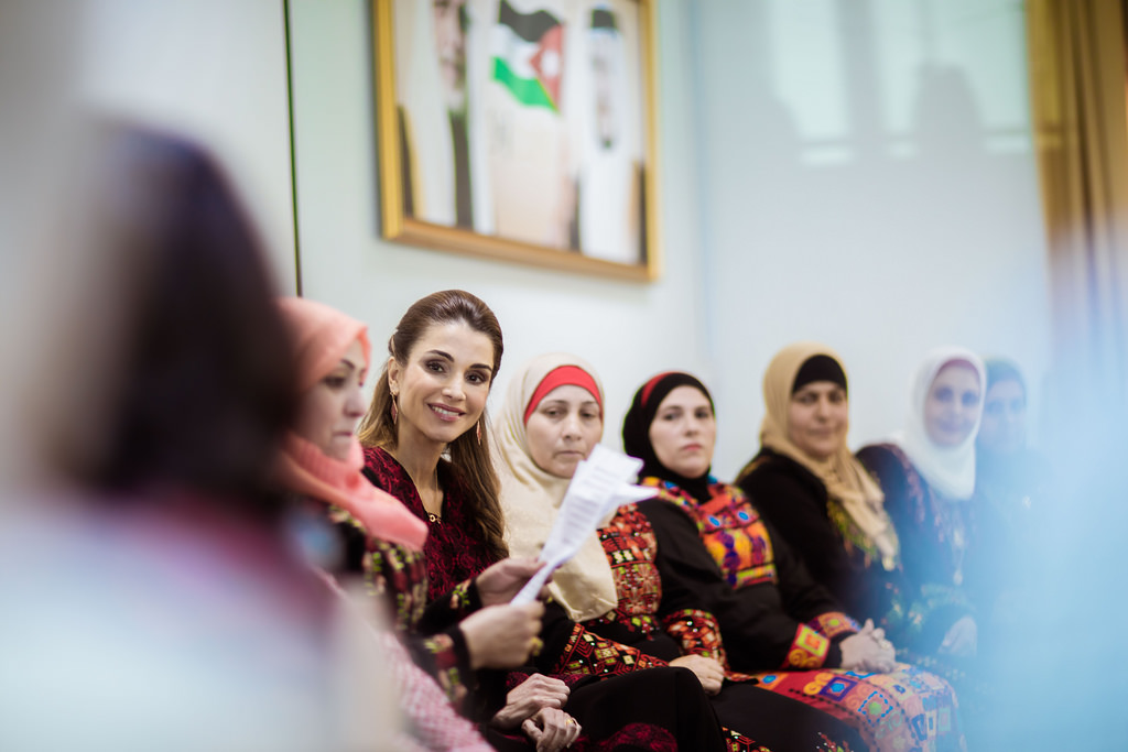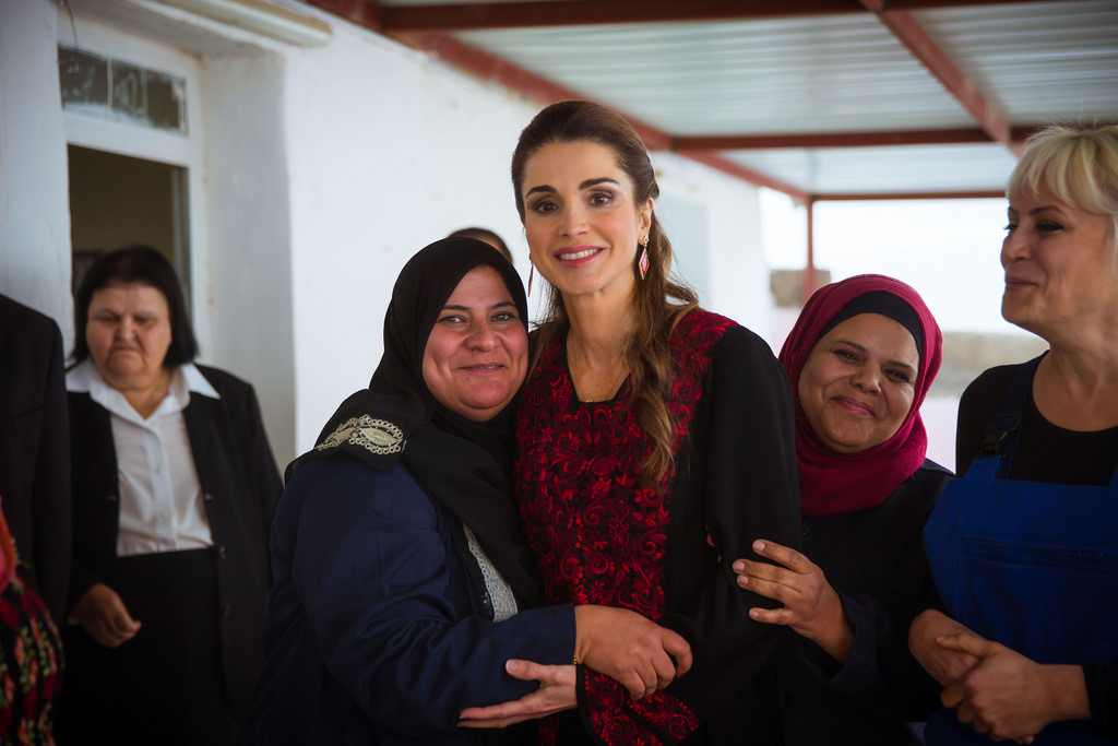 Her Majesty Queen Rania Al Abdullah during a visit to Basmet Al-Khair Charitable Society for Women in Allan village, Al Balqa