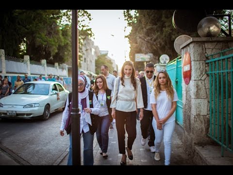 Her Majesty Queen Rania Al Abdullah with Her Royal Highness Princess Iman bint Abdullah during a walk around Rainbow St. with Out and About group