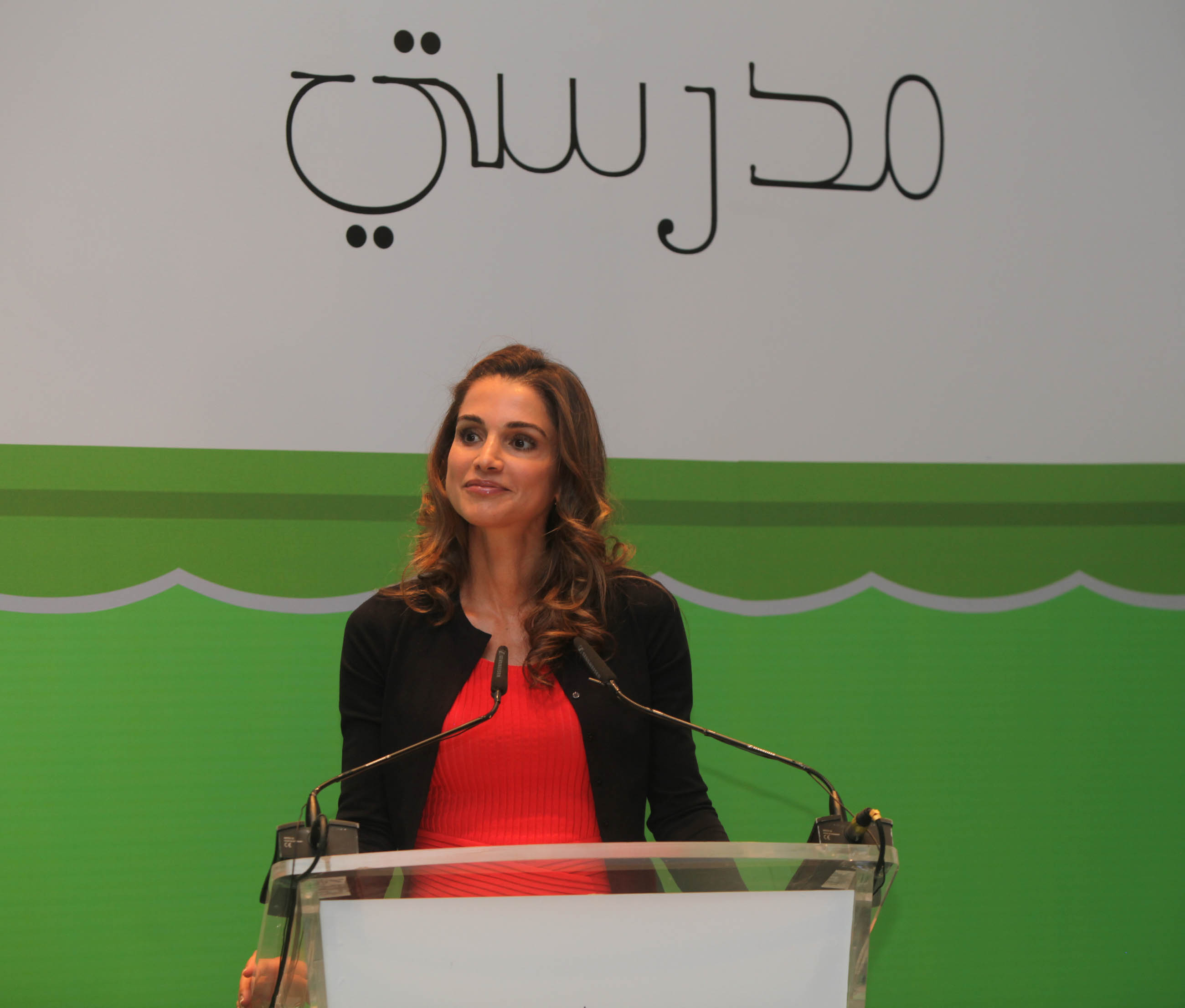 الملكة رانيا خلال إطلاق المرحلة الخامسة من مبادرة "مدرستي".