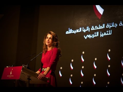 جلالة الملكة رانيا العبدالله تتحدث عن أهمية دور المعلم في المجتمع وذلك خلال الاحتفال بجائزة الملكة رانيا العبدالله للمعلم المتميز في دورتها السابعة.
