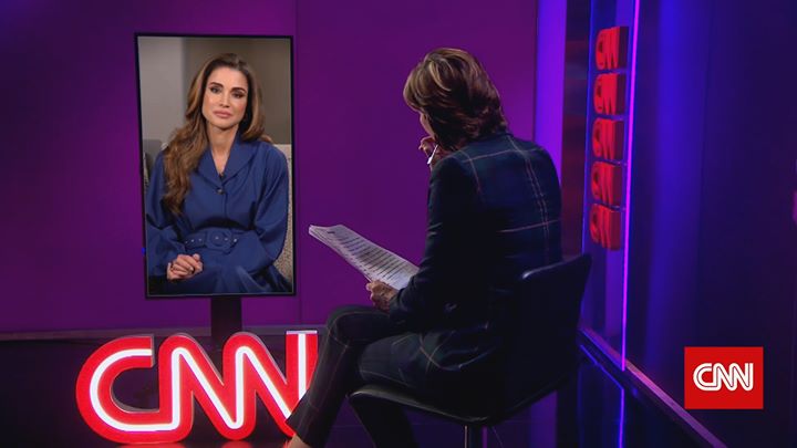 الملكة رانيا في حوار مع مذيعة محطة سي إن إن بيكي آندرسون خلال المشاركة في قمة وارويك الاقتصادية العشرين التي عقدت عبر تقنية الاتصال المرئي