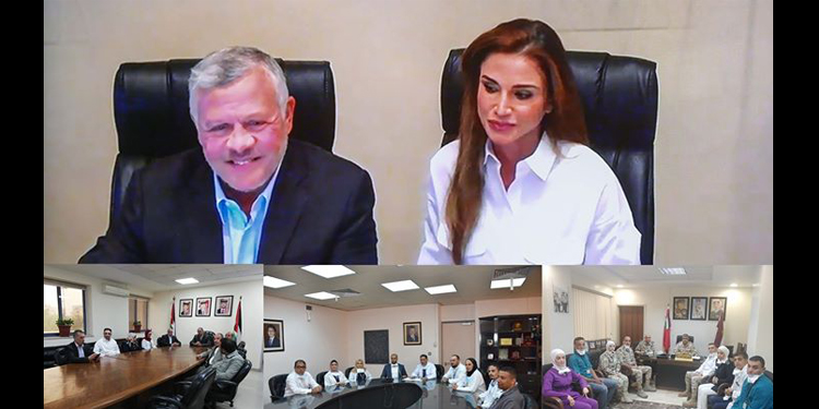 من الاتصال المرئي لجلالة الملك وجلالة الملكة مع كوادر في 3 مستشفيات