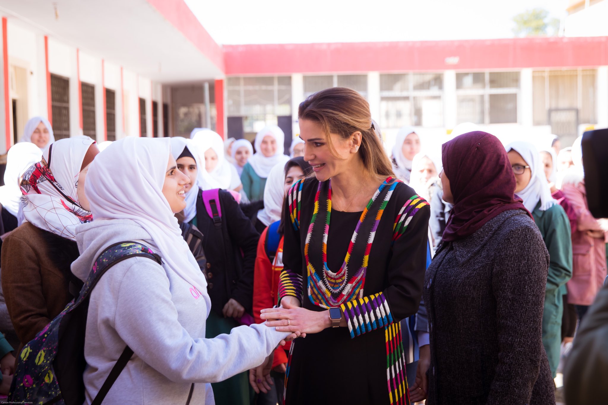 الملكة رانيا خلال زيارة إلى محافظة اربد الأمس