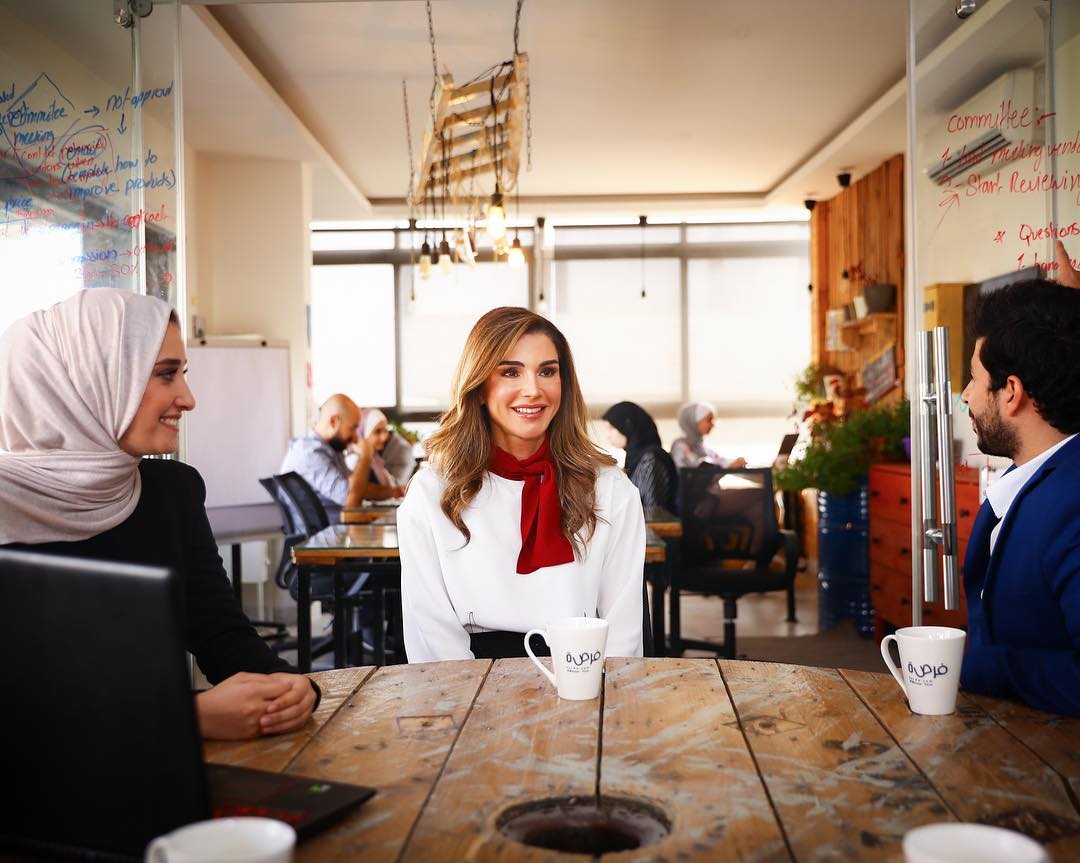 الملكة رانيا خلال لقاء مع فريق قادة الغد