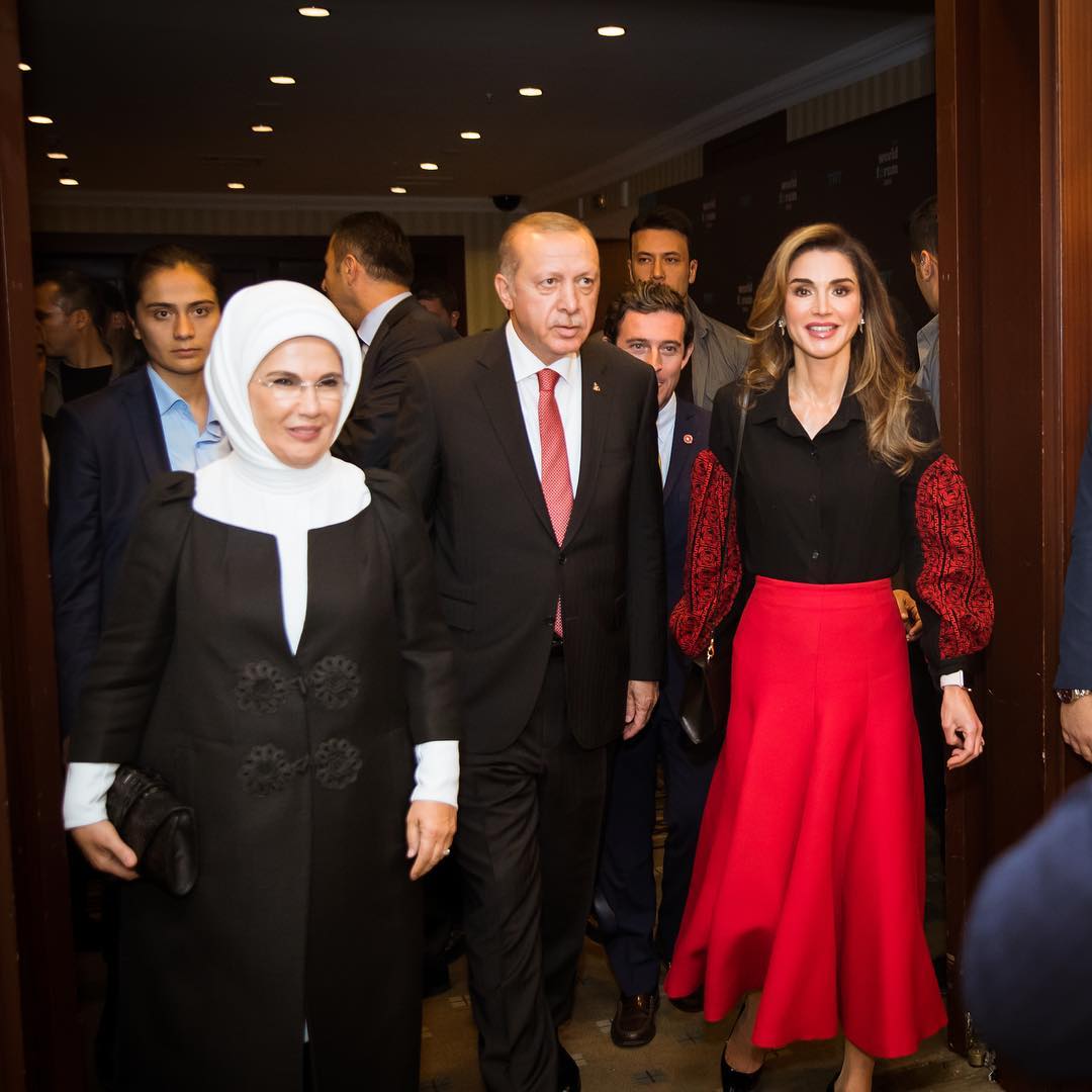 مع الرئيس التركي رجب طيب أردوغان والسيدة الأولى أمينة أردوغان أثناء المشاركة في أعمال المنتدى الفكري الذي تنظمه القناة التركية تي آر تي وورلد في اسطنبول