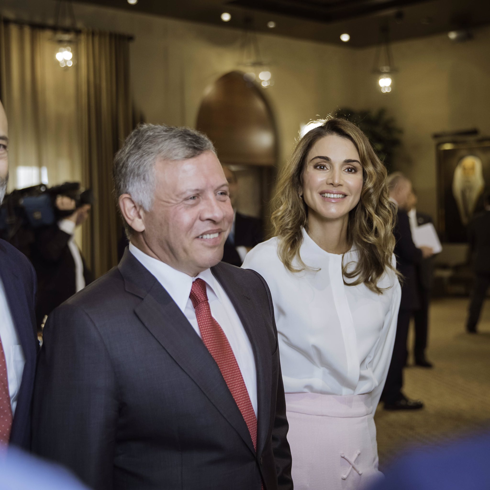 جلالتا الملك عبدالله الثاني والملكة رانيا مع مجموعة من طلبة التوجيهي المتميزين في الأردن لهذا العام