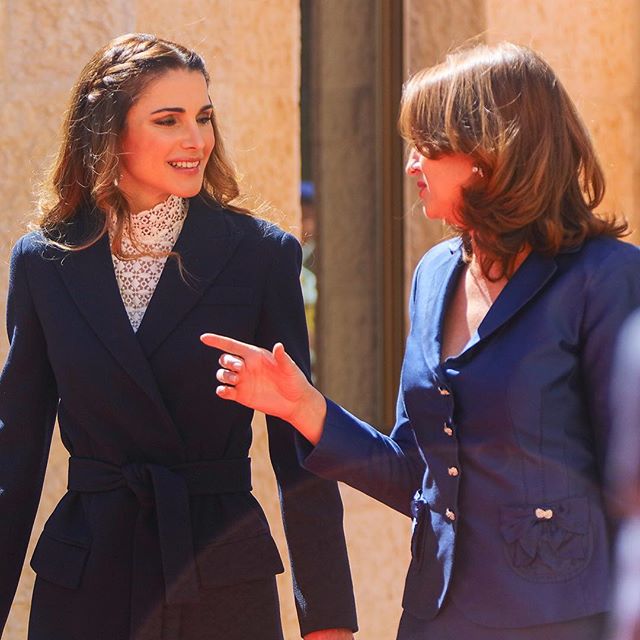 مع عقيلة الرئيس الألباني أوديتا نيشاني اليوم في قصر الحسينية بعد مراسم الاستقبال الرسمي مع جلالة الملك والرئيس الألباني بوجار نيشاني