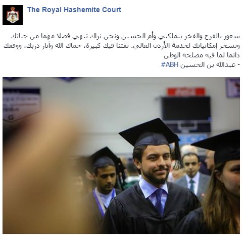 RT @RHCJO: جلالة الملك عبدالله الثاني وجلالة الملكة رانيا يباركان لسمو الأمير الحسين ولي العهد بمناسبة تخرجه من جامعةجوروج تاون https://t.c…