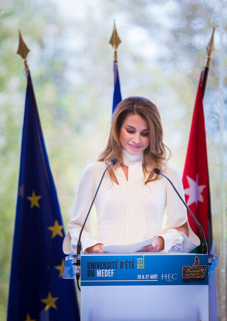 Queen Rania Al Abdullah at the opening of MEDEF’s youth-themed Summer University in Paris