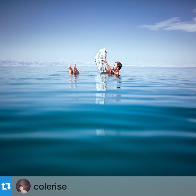 Another great photo of Jordan from @colerise #LoveJO ・・・ floating high in the lowest place on earth. the dead sea is 9.6 times saltier than the ocean, making you buoyant enough to comfortably check the stock market without getting the pages (or your camera) wet. to get the behind the scenes, add me on snapchat: colerise #jordan #deadsea #litely